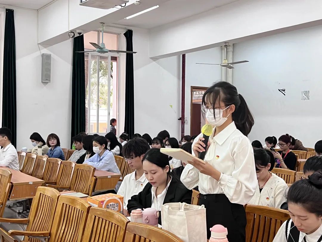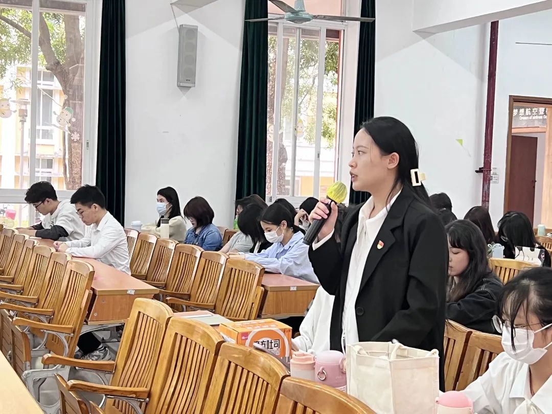 第二项议程为支部书记汇报公共管理学院学生党支部在过去一年的工作情况。宣伟男同志向在座全体党员作2022年度学生党支部的工作述职报告,认真分析了学生支部在过去一年中的工作进展与成效。各位党员都能自觉履行党员义务,积极参与党组织活动,用心、用情、用力为群众办实事。同时,宣伟男同志针对我院党建工作存在的问题和不足也提出了整改措施,并强调公共管理学院学生党支部要做好2023年常态化理论学习和实践活动。