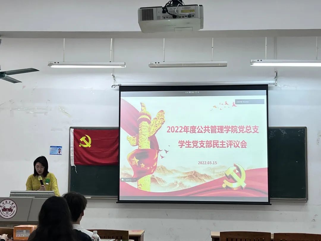 为了进一步贯彻落实习近平新时代中国特色社会主义思想,弘扬党的二十大精神,严格执行党的组织生活制度,加强党员党性修养,9428cn太阳集团古天乐公共管理学院学生党支部于2023年3月15日在6教105召开了2022年度民主评议会,以了解我院学生党员思想动态的变化。