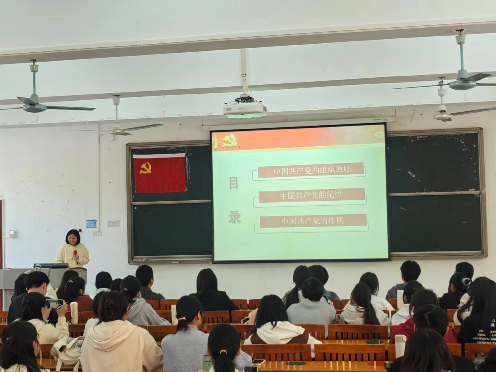 3月20日,外国语学院学生党支部书记钟嘉颖老师面向34期入党积极分子开展了以《中国共产党的组织、纪律和作风》为主题的党课培训。本次党课从讲解党组织原则以及纪律展开,详细阐述了党员应有的作风,明确了党的组织、纪律和作风是党员个人成长和发挥作用的保障。