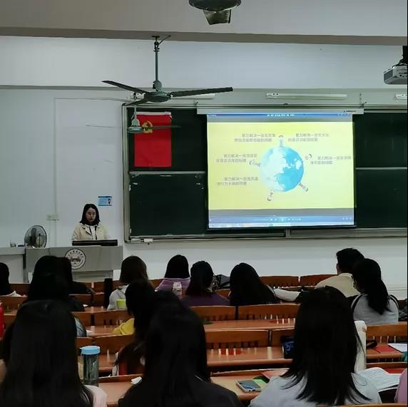 教师党员张佩怡同志先以黄继光战士舍身堵枪口的壮烈事迹为引,阐述了党的性质,呼吁各位发展对象“牢记党员身份,争做合格党员”。而后,张佩怡同志辅以短片《红星何以照耀中国》,讲述了中国早期共产主义者探索救国道路的历程。短片结束,张佩怡同志拓展了“两学一做”和“三严三实”的学习教育,紧接着向在座发展对象详细叙述了新时代党员的八项义务和八项权利,帮助在座发展对象明悉党员义务和党员权利二者各自的内涵及相关关系、消除对义务和权利的错误片面认识、认清党员义务和权利的辩证关系,以此来提高在座发展对象的思想觉悟,规范其行为准则,从而保持党员队伍的先进性,促进党的事业发展。