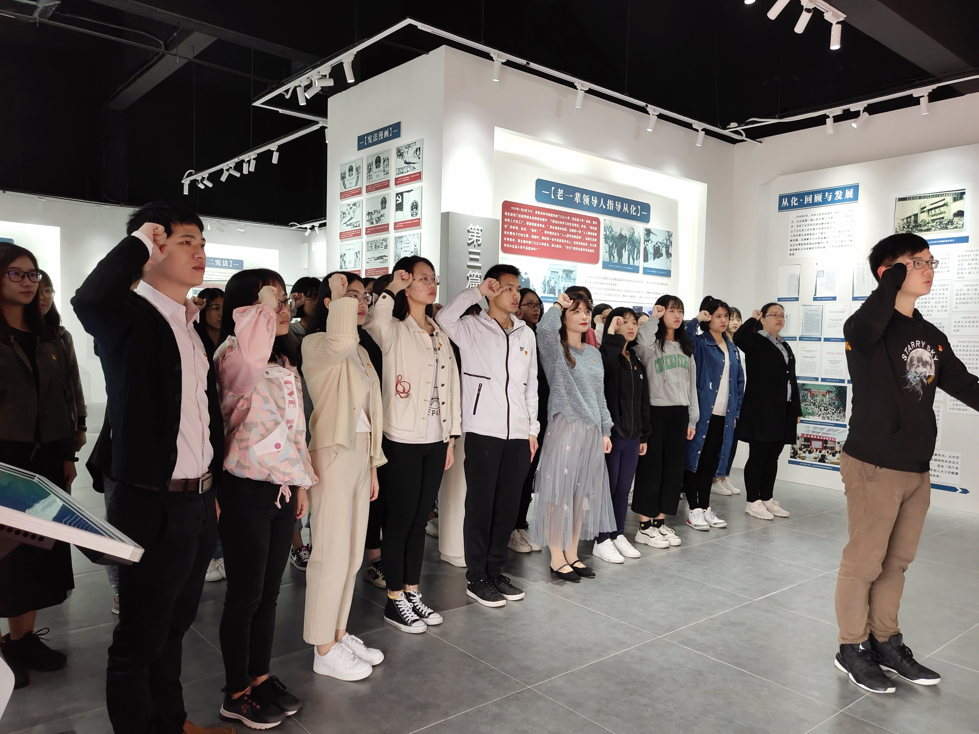 临近宪法馆参观结束之际,由学生党员吴泽平同志领誓,全体同志右手握拳,进行了神圣庄严的宪法宣誓。通过集体宣誓的形式,大家更能感受到宪法的魅力,从而引导大家自觉遵守宪法、维护宪法、运用宪法,自觉做宪法的忠实者和捍卫者。