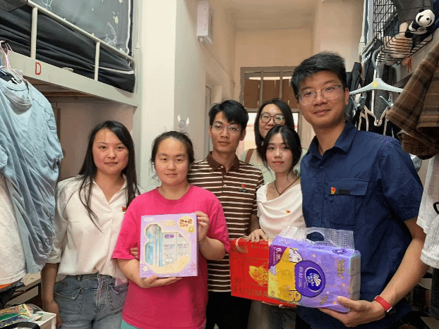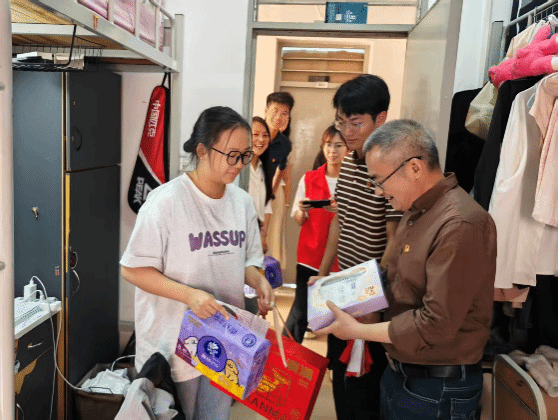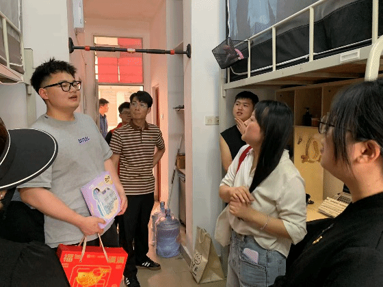 交谈之余,学院老师与后勤党支部老师一同对宿舍开展细致的安全卫生检查,对同学们保持的整洁有序的生活环境给予充分肯定与赞扬。老师们反复叮嘱大家规范使用电器,强化消防安全意识,携手营造安全、舒适、整洁的毕业季宿舍环境。随后,支部为毕业生送上精心准备的爱心慰问品,将党组织的关怀与温暖亲手传递到每一位学生手中,让雷锋精神在暖心的互动交流中得到生动传承。