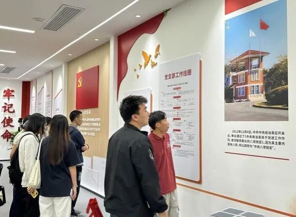 走进党建思政育人馆,红色气息扑面而来。红色主题墙庄重肃穆,数字化展陈生动鲜活,全方位展现了学校党建引领育人的创新实践与丰硕成果。
