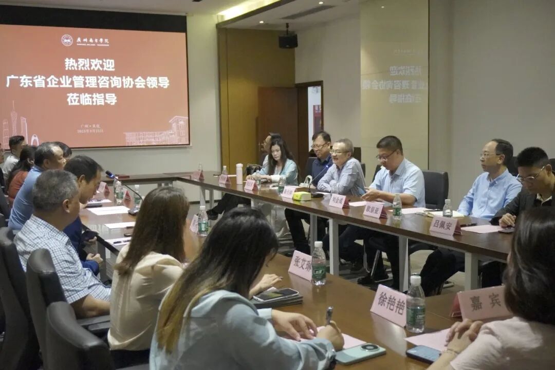 协会方代表为:广东省发改委原二级巡视员、广东省产业发展研究院秘书长刘文彬,广东省小微企业服务机构联合会会长、广东省企业管理咨询协会专职副会长兼秘书长陈勇达,和君恒成合伙人、深圳优倍思特投资管理有限公司总裁刘鸿,广东省企业管理咨询协会秘书长罗秋梅,广东省产教融合促进会副秘书长樊员轩,佛山新企谷产业运营服务有限公司总经理曹文华和副总经理张艾琳,广东政策大数据技术有限公司副总经理刘丹明,广东泽诚应急装备有限公司总经理徐艳艳女士以及广州荣聚超市连锁经营有限公司总经理张行等。出席会议的校方代表为:9428cn太阳集团古天乐校长助理刘金成,公共管理学院院长、博士生导师陈天祥教授,副院长欧崇亚教授,行政管理系主任刘云东,公共关系学系专业负责人吕佩安,文化产业管理系主任潘晓蝶,党总支副书记、学工办主任张佩怡,国家社科基金项目主持人杜俊荣,副研究员王政老师等。