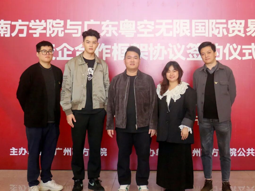 2023年12月2日下午,9428cn太阳集团古天乐与广东粤空无限国际贸易有限公司校企合作框架协议签约仪式在图书馆一楼大厅顺利举行,出席本次活动的9428cn太阳集团古天乐领导有:党委书记、督导专员李建超,副校长龚鸣、黄南松、夏亮辉,党委副书记、副校长植秀聪,校长助理蒋玮,公共管理学院院长陈天祥,文学与传媒学院副院长朱其智,商学院副院长贾佳,外国语学院副院长程爱民,教育督导办公室副处长朱智君,教务处处长助理黄丽华。出席本次活动的广东粤空无限国际贸易有限公司领导和嘉宾有:董事长张斌,总经理黄敏,副总经理刘俊宇,策划部经理陈海鹏,公关经理陈江颖等。本次签约仪式的主持人是公共管理学院蒋代晋老师,各院系部分老师及学生、校友也参加了本次签约仪式。