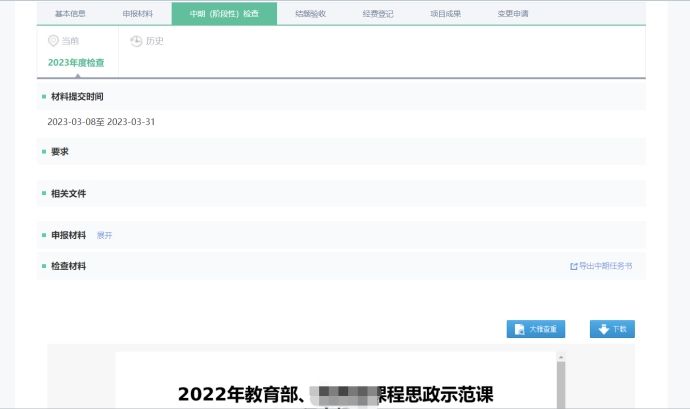 1. 当已通过申报评审的项目进入到中期、结题阶段时,对应项目会有提交材料的提示。