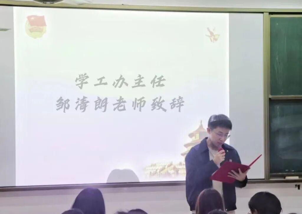 开幕式上,学工办主任邹清朗老师强调理论联系实际是青马的精髓,我们既是马克思主义的学习者,更是坚定的实践者,勉励全体青马学员要始终牢记马克思主义的真理力量,在理论学习中锤炼品格,在社会实践和志愿服务活动锻炼中增长才干,既要“读万卷书”夯实理论根基,也要“行万里路”践行青年担当。同时作为学生干部,更要牢记一言一行皆代表学院,充分发挥示范引领作用,以实际行动诠释青马学员的责任与担当。